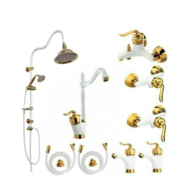 ست 9تایی شیرآلات قاجاری سفیدطلایی شامل: