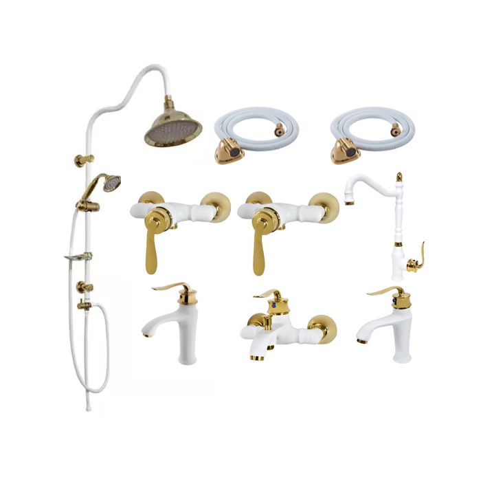 ست 9تایی شیرآلات بامبو سفیدطلایی شامل: